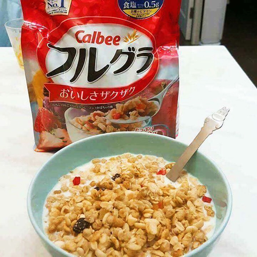 Ngũ cốc Calbee còn là một phương pháp tiện lợi cho bất kì bữa ăn nào. Bất kì khi nào bạn cần đến Calbee, chỉ cần kết hợp cùng sữa hay sữa chua là có thể dùng được ngay. Đặc điểm công dụng của NGŨ CỐC : - Ngũ cốc Calbee có hàm lượng chất béo rất thấp nhưng lại có hàm lượng vitamin và khoáng chất cao, giúp cung cấp đầy đủ các dưỡng chất cho cơ thể. - Mỗi bữa sáng với ngũ cốc giúp bạn giảm cân cực kỳ hiệu quả mà lại không gây tác dụng phụ. - Ngũ cốc giàu chất xơ có lợi cho hệ tiêu hóa chứ không gây chướng bụng, đầy hơi như nhiều thực phẩm dinh dưỡng khác. Đối với những người có hàm lượng cholesteron trong máu cao, sử dụng bột ngũ cốc thường xuyên duy trì sức khỏe tốt nhất mà không gây tăng cân, không ảnh hưởng tới hiện tượng tích tụ mỡ và đường trong máu. - Ngũ cốc Calbee chứa rất nhiều loại hạt và trái cây có giá trị dinh dưỡng cao, không thêm gia vị mà tận dụng những hương vị vốn có của loại trái cây đó. - Từ trẻ nhỏ đến người già, ngay cả người bệnh tiểu đường những người cần bổ sung canxi và sắt như người ốm dậy, suy dinh dưỡng, bà bầu, mẹ cho con bú hay trẻ biếng ăn cần bổ sung dinh dưỡng cũng rất rất thích thú với loại ngũ cốc Calbee của Nhật bởi nó rất bổ dưỡng và thơm ngon. - Nó là một loại ngũ cốc giàu chất dinh dưỡng, chứa nhiều loại trái cây và hạt được sấy khô như là yến mạch, lúa mạch, táo, nho, đu đủ, dâu tây, dừa, ngô, bí ngô, hạnh nhân, gạo nâu, sữa... - Ngũ cốc Calbee luôn yên tâm về giá trị dinh dưỡng, giàu canxi, chất xơ & các loại vitamin B6,vitamin A, vitamin D, vitamin 12 và axit folic rất tốt cho bà bầu và những bà mẹ đang cho con bú. - Ngũ cốc ngon, không ngấy, và là một thực phẩm có giá trị dinh dưỡng cao, giúp bổ sung chất xơ và chất sắt cho cả gia đình. - Bạn cũng có thể dùng những loại bánh nướng thật ngon, bánh pizza, kem…