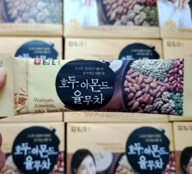 - Quy cách : HỘP 50 GÓI /50g - Xuất xứ: Hàn Quốc Là một loại trà dinh dưỡng thơm ngon, rất có lợi cho sức khoẻ. Bột ngũ cốc Damtuh Hàn Quốc được chế biến từ thành phần bao gồm: quả óc chó, hạnh nhân, bí ngô, đậu phộng (lạc), hạt ý dĩ; theo phươnb pháp sấy khô từ những hạt ngũ cốc được lựa chọn cẩn thận. CÔNG DỤNG: * Quả óc chó: Cải thiện sức khỏe tim mạch, củng cố động mạch, ngăn ngừa sỏi túi mật, bảo vệ xương,tốt cho trí não,tốt cho người bệnh tiểu đường, giúp nhuận tràng, phòng chống ung thư, tránh tình trạng mất ngủ. * Quả hạnh nhân: Nghiên cứu mới của các nhà khoa học tiết lộ rằng hóa chất tự nhiên được tìm thấy trong lớp màng của hạt quả hạnh nhân cải thiện khả năng của các tế bào máu trắng trong việc phát hiện virus, đồng thời làm tăng khả năng của cơ thể trong việc ngăn chặn sao chép của các virus dẫn tới sự lây lan của chúng trong cơ thể, giúp tăng cường hệ miễn dịch trong cơ thể con người. Họ phát hiện ra rằng ngay cả khi đã được tiêu hóa trong đường ruột, lớp màng của hạt hạnh nhân vẫn phát huy tác dụng làm gia tăng việc bảo vệ hệ miễn dịch, giúp cơ thể kháng lại virus. * Hạt ý dĩ ( Coix): Bồi dưỡng cơ thể do có hàm lượng protid và lipid cao, tăng cường quá trình trao đổi chất cho da cũng như dưỡng ẩm, làm trắng da, ngăn ngừa khô nứt da. Ngoài ra cũng rất công dụng trong chữa viêm ruột và tiểu chảy kéo dài, phù thũng, sỏi thận, tê thấp, nhức mỏi chân tay, kiện tỳ bổ phế, thanh nhiệt. * Hạt bí ngô: Chứa các thành phần chống căng thẳng thần kinh, làm giảm sự lo lắng, kháng khuẩn và thậm chí ngừa ung thư. * Hạt đậu phộng: Một trong những loại đậu dồi dào protein, giảm nguy cơ sinh con dị tật, ổn định đường huyết, ngăn ngừa tối đa sỏi mật, phòng chống trầm cảm, tăng cường trí nhớ, giảm nồng độ cholesterol, bảo vệ tim mạch, chống sa sút trí tuệ ở tuổi già, phòng bệnh ung thư, giảm nguy cơ tăng cân.