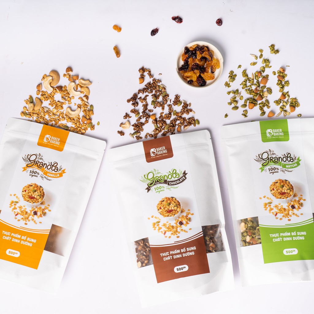 Giới thiệu Ngũ cốc Granola Baker Baking không đường, không chất bảo quản dành cho mẹ bầu, ăn kiêng, tiểu đường, eatclean 300-500g