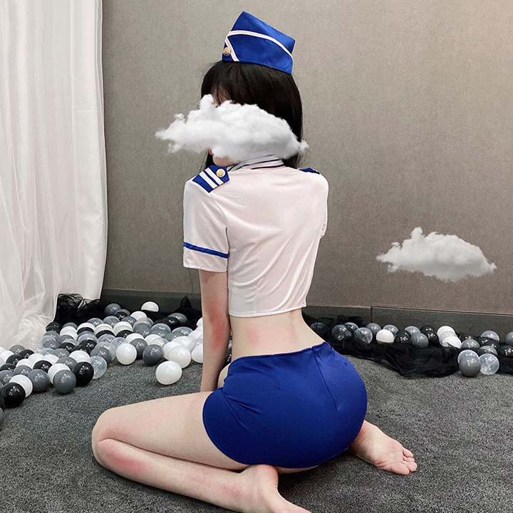 - Sản phẩm bao gồm: Mũ + Áo trắng + Chân váy xanh biển + Nơ cổ
