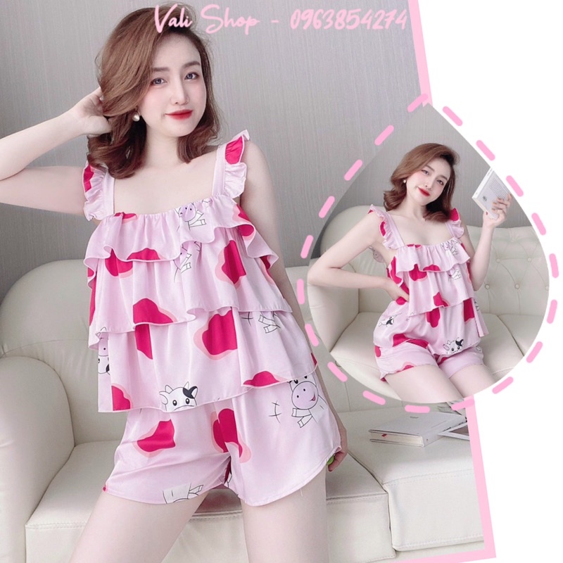 Giới thiệu Đồ ngủ lụa latin cao cấp tay cánh tiên nhí áo bèo tầng freesize 40-57kg