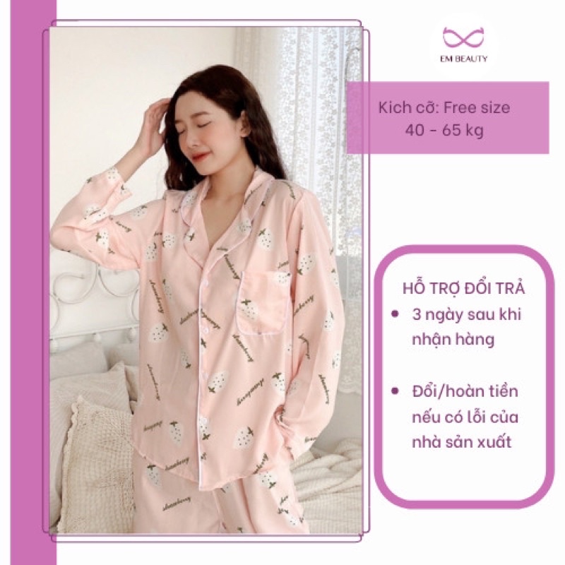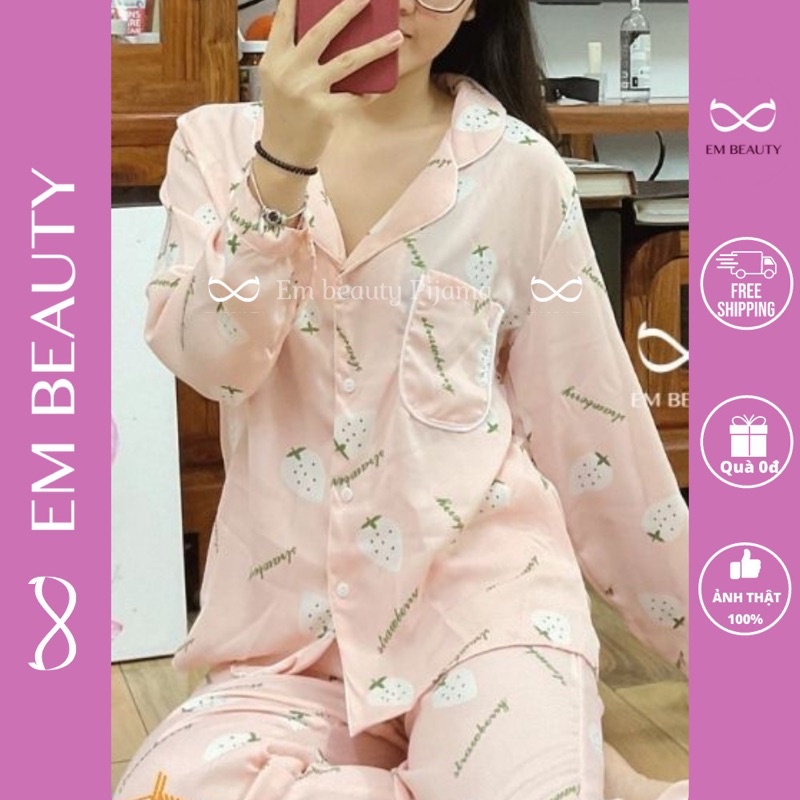 Bộ ngủ lụa dài tay phối ren EM Beauty Pijama lụa với 2 màu hoa cúc và dâu hồng siêu yêu từ lụa Mango cao cấp, tuyệt đối thoáng, mịn, mát. Đường may kỹ lưỡng, kiểu dáng sang trọng =>🎁Bấm xem thêm để mua và nhận quà 0đ