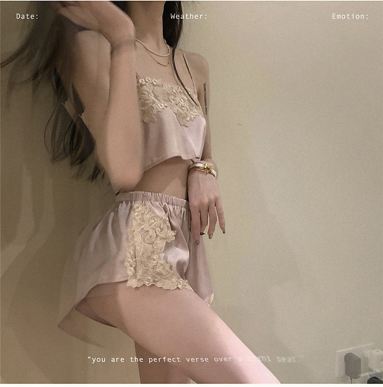 Áo 2 dây lụa sexy ren quyến rũ, quần đùi lụa mềm mại, vừa là pijama nữ còn vừa là đồ ngủ quyến rũ gợi cảm khiến cánh đàn ông phải say đắm.