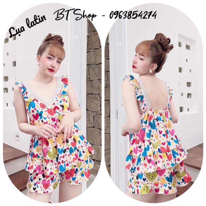 Giới thiệu Đồ ngủ mặc nhà lụa latin bèo đùi hoạ tiết freesize 42-57kg