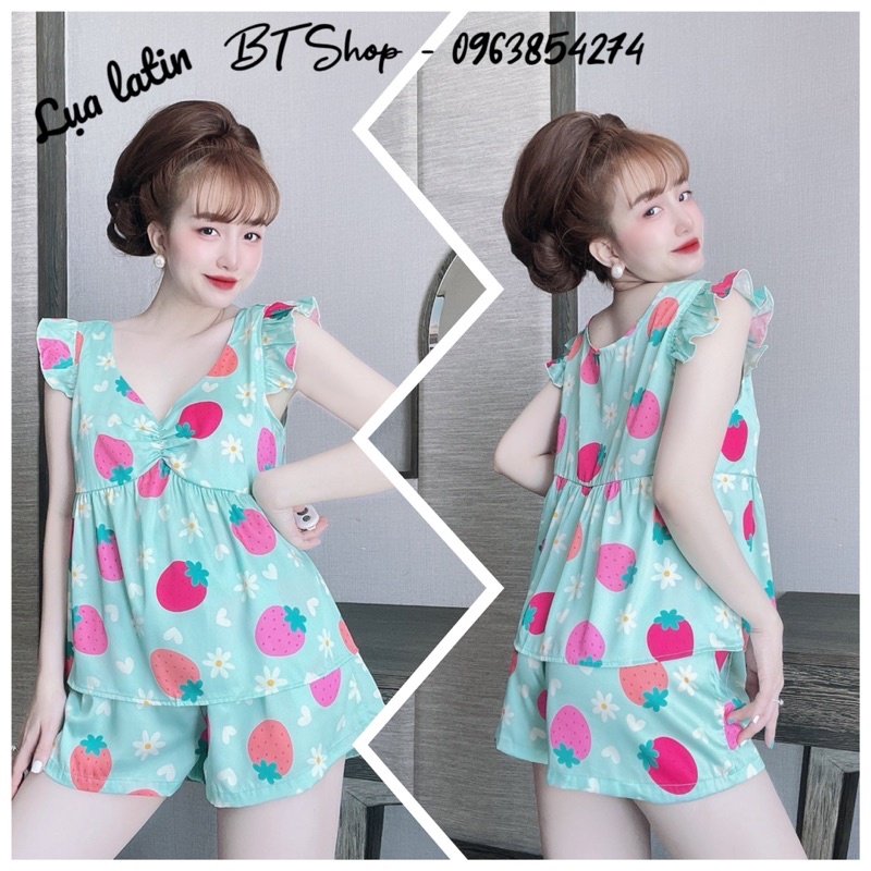 Giới thiệu Đồ bộ ngủ mặc nhà lụa latin hoạ tiết tay cánh tiên freesize 42-57kg