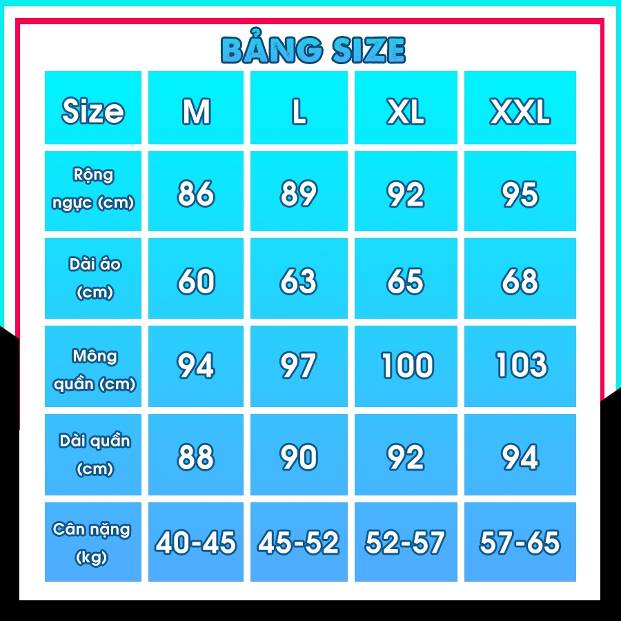 ✅ Hướng dẫn chọn size cho đồ ngủ nữ dài tay: • M (40-45kg) • L (45-52kg) • XL (52-57kg) • XXL (57-65kg) Đồ ngủ nữ mặc nhà tay dài quần dài được thiết kế form dáng suông, họa tiết cute, cùng chất liệu cotton thun cao cấp phù hợp cả cho các mẹ sau sinh đó ạ