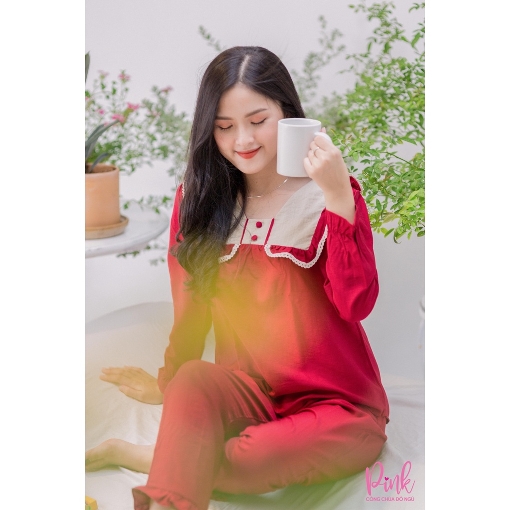 Giới thiệu Bộ Đồ Ngủ Pijama Dài Tay Pinksleepwear Quần Dài Vải Đũi Cao Cấp Thoáng Mát Bộ Ngủ Nữ Phong Cách Tiểu Thư Hàn Quốc