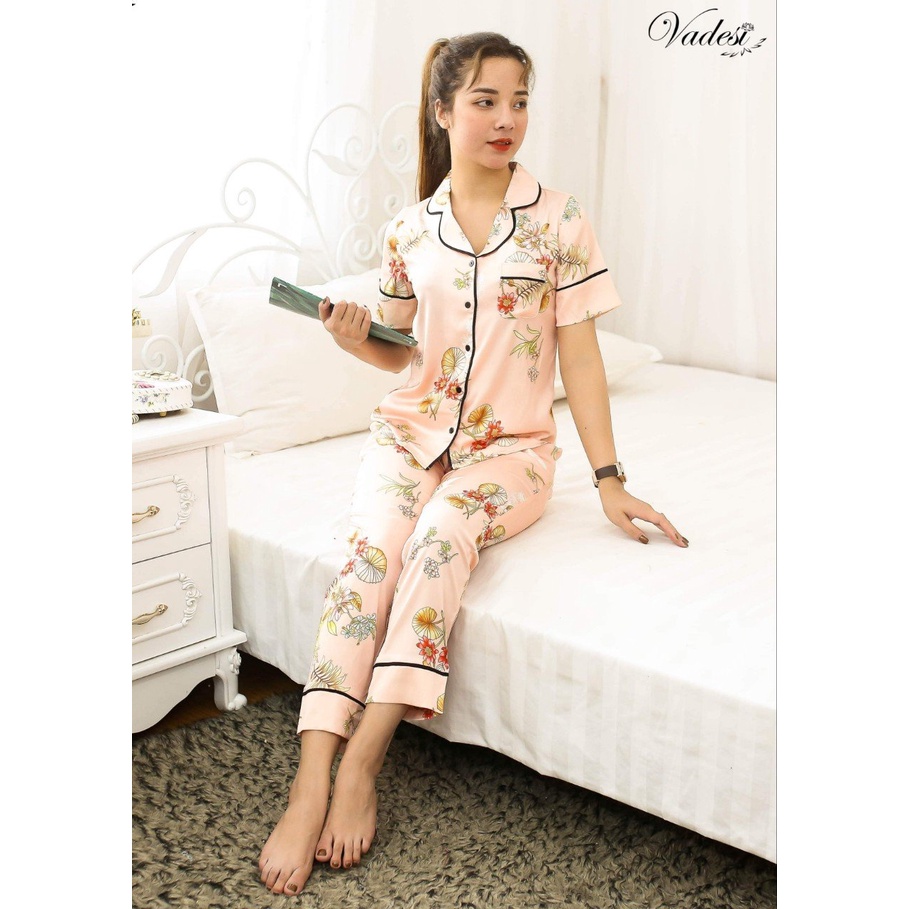 Đồ Ngủ Pijama Nữ Bộ Quần Dài Tay Ngắn Lụa Cao Cấp Mặc Nhà Đẹp Mềm Mịn Thấm Hút Thoáng Mát – VADESI