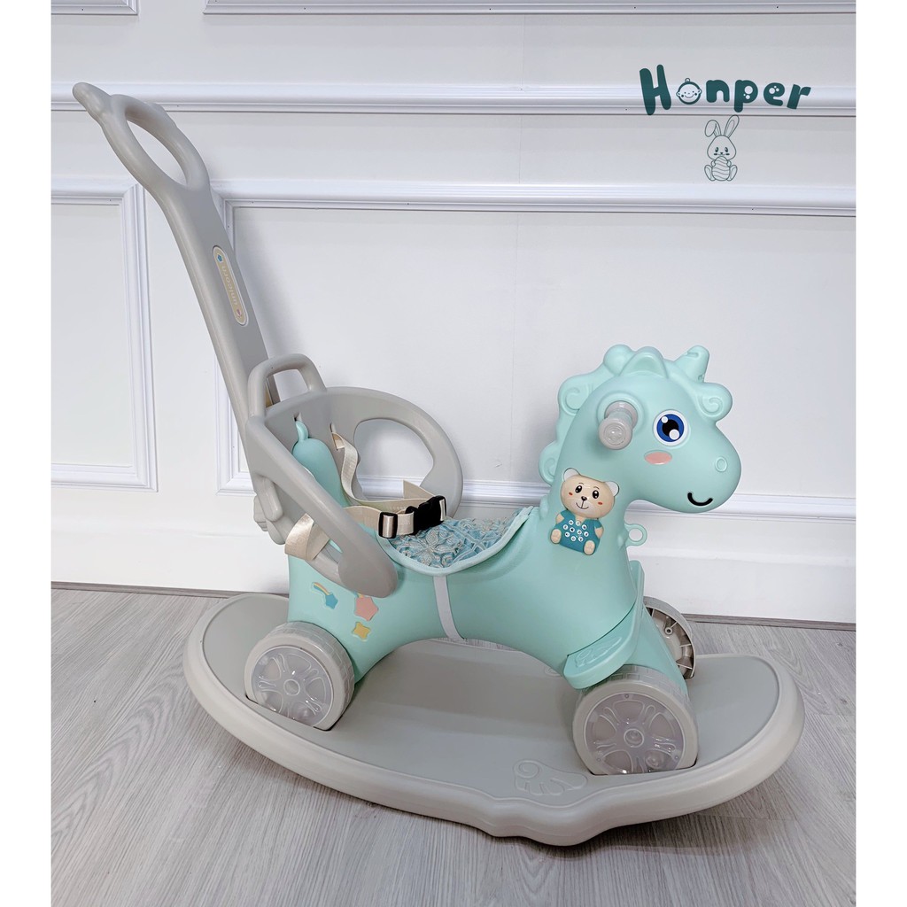 Giới thiệu Ngựa bập bênh honper đa năng có cần đẩy phân phối chính hãng Bonbon Mart
