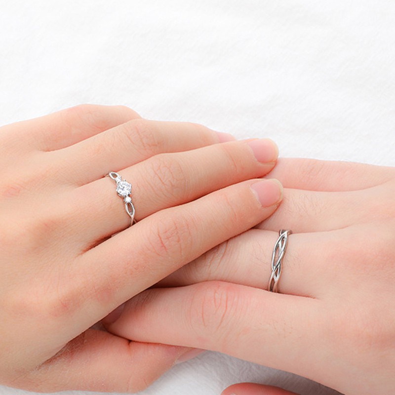 Giới thiệu Nhẫn đôi Nam nữ Inox Mạ bạc Đan xen Quà ngày lễ tình nhân Không phai màu Trang sức NH-058