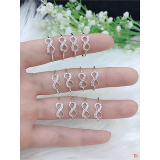 - Chất liệu: Chất liệu hợp kim bạc, inox, mạ vàng, đá quý… có độ bền cực cao, chống oxi hóa hiệu quả và tuyệt đối an toàn cho ngay cả những làn da nhạy cảm. Chất liệu này hoàn toàn không chứa chì, Cadimi hay Atimon độc hại. - Kiểu dáng: Chiếc nhẫn với họa tiết khắc trên mặt nhẫn rất đa dạng như hình trái tim, hình lập thể thời thượng, hình chữ,… kết hợp với hạt đính lấp lánh sẽ phù hợp với nhiều hình dáng tay cũng như độ tuổi. Đặc biệt sẽ giúp bạn che được khuyết điểm của ngón tay như hình dáng khúc khủy hoặc ngón tay dài. Thiết kế tinh tế thể hiện nét đẹp nữ tính, cùng họa tiết xinh xắn cho bạn gái thêm nét trẻ trung, nổi bật và đầy sang trọng. Sản phẩm dễ kết hợp với các loại phụ kiện khác cùng chất liệu như đồng hồ, dây chuyền, lắc tay… Đồng thời, vẻ ngoài tinh khiết của sản phẩm giúp bạn dễ diện cùng với nhiều loại trang phục khác nhau, tôn lên vẻ đẹp và sự sang trọng cho các bạn nữ.