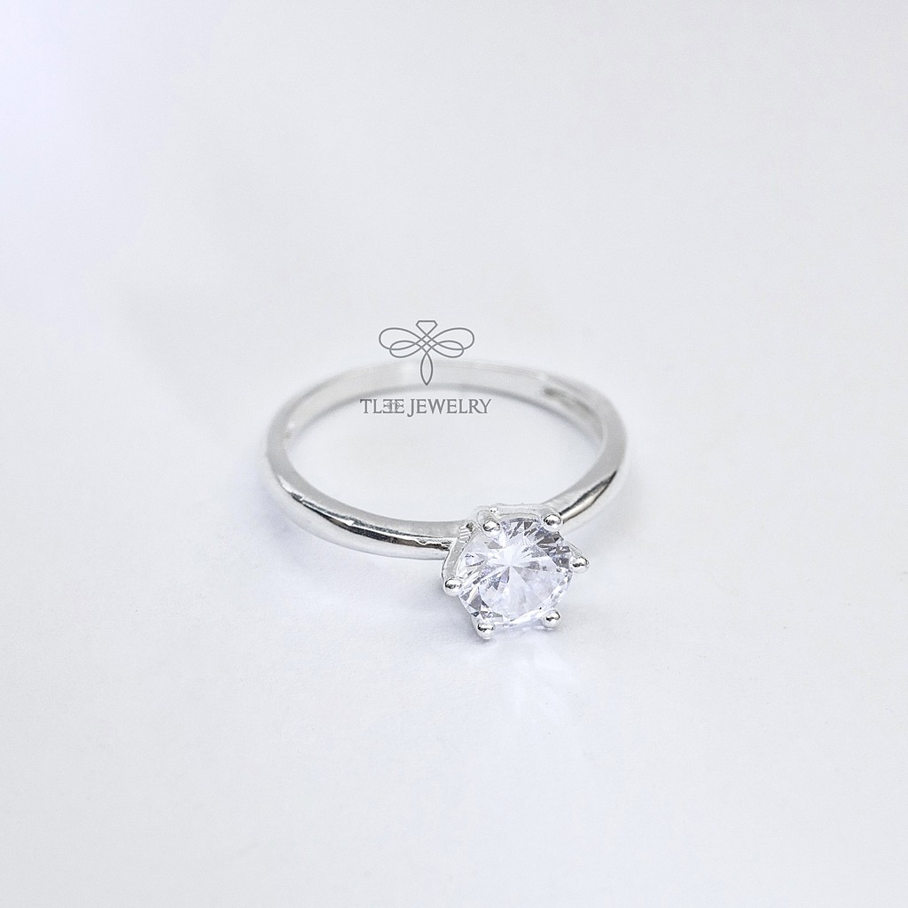 💎💎💎💎 THÔNG TIN SẢN PHẨM: Nhẫn bạc nữ Tlee, Nhẫn trụ đá cao 6 chấu viền trơn sang chảnh- TleeSilver