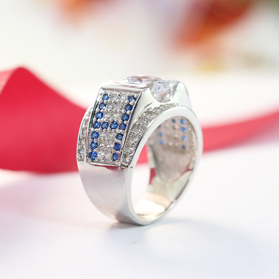 - Nhẫn bạc nam đính đá chữ H thể hiện đẳng cấp sang trọng, lịch lãm.