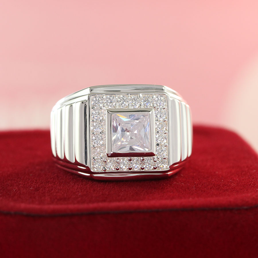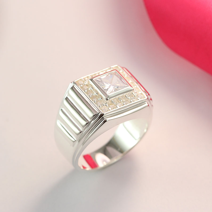 - Nhẫn bạc nam đính đá mặt vuông độc đáo được khách hàng lựa chọn nhiều nhất