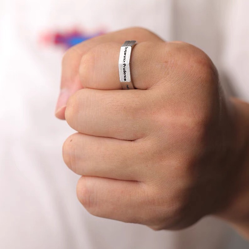 💝Mô tả sản phẩm: 👉Nhẫn dành cho nam và nữ, phong cách mạnh mẽ cá tính, hiphop 👉Nhẫn mở, Freesize. 👉Màu sắc: Trắng bạc 👉Kích thước: Đường kính đóng 18 mm. chiều ngang 5 mm. dày: 1.2mm 👉Nhẫn đẹp, độc lạ, duy nhất có tai Ogici.