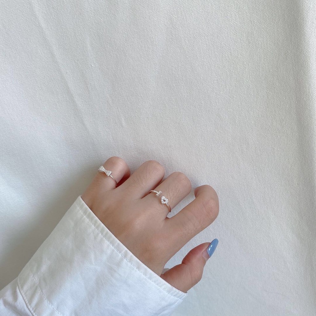 Giới thiệu Nhẫn bạc Nơ đính đá ngón út freesize Tlee bạc nguyên chất