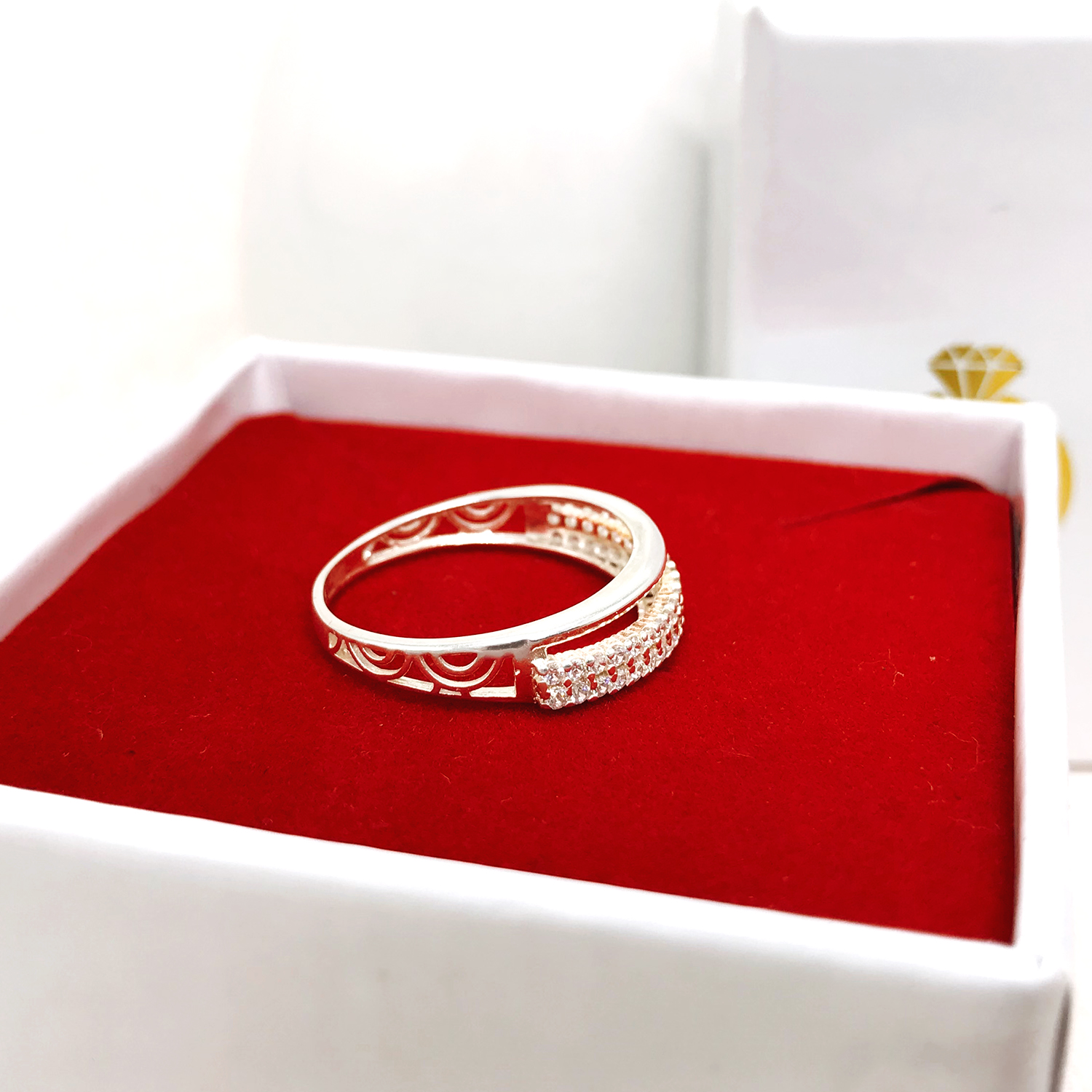 -Kiểu dáng: nhẫn trơn, đính đá zirconia