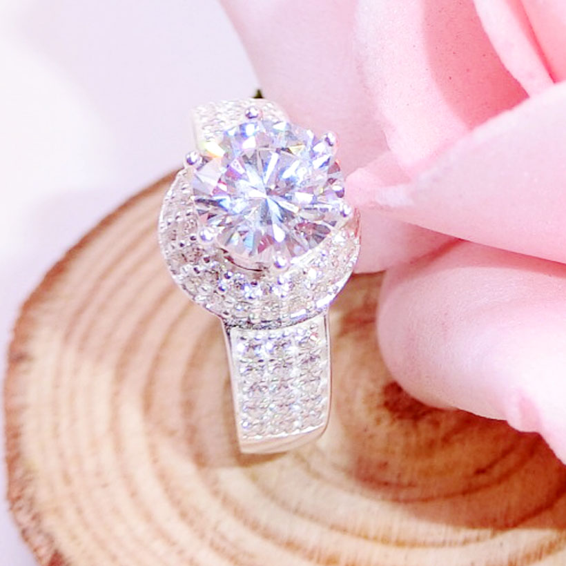 Nhẫn Bạc Nữ Hột Nữ Hoàng Kim Tiền Jewelry Bạc Nguyên Chất - Kiểu Dáng Model