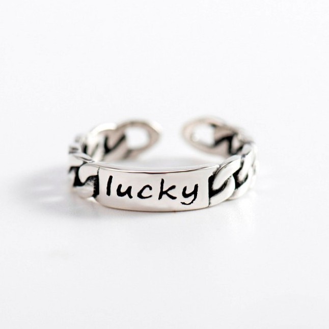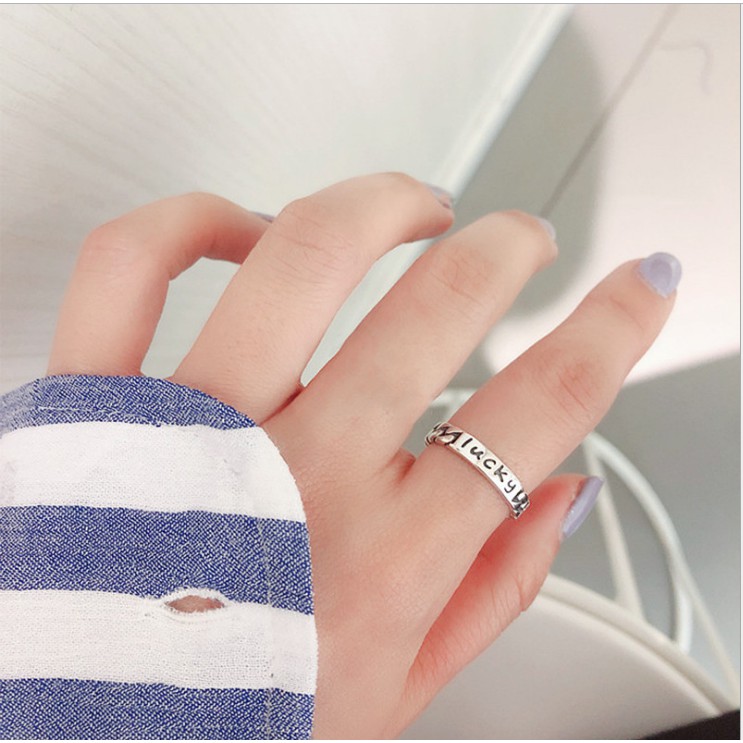 Tên sản phẩm: Nhẫn Bạc Nữ | Nhẫn Nữ Bạc Thái Khắc Chữ Lucky May Mắn N1700