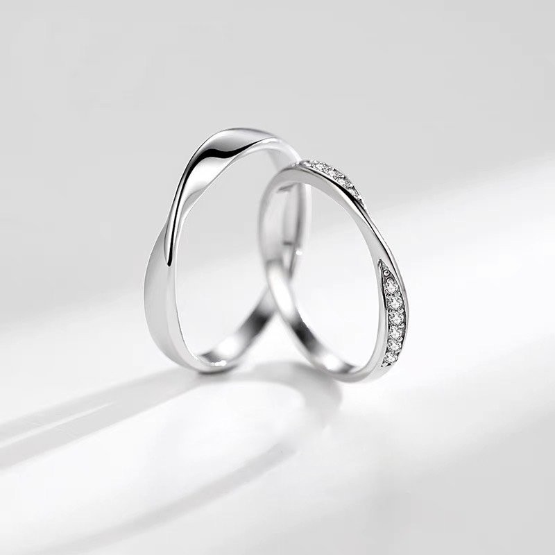 Giới thiệu Nhẫn cặp đôi nam nữ FREESIZE mẫu UỐN ĐÍNH HẠT Mạ bạc 925 dành cho tình nhân ❤️