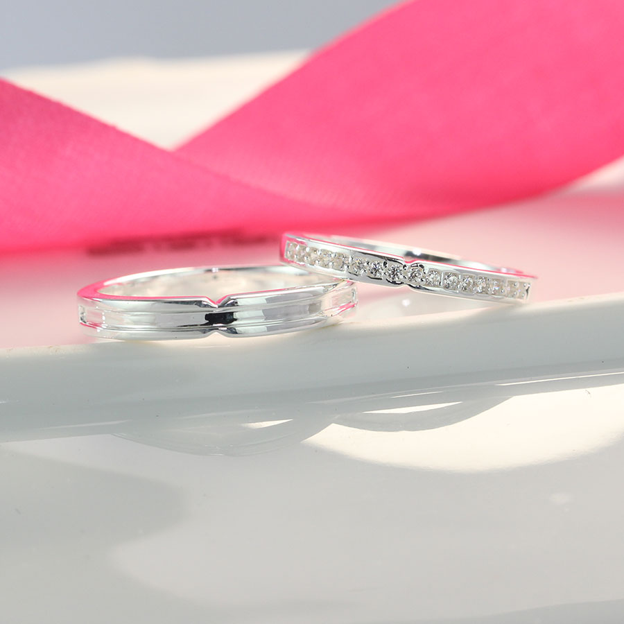 Nhẫn đôi bạc nhẫn cặp bạc đính đá đơn giản ND0398 - Trang Sức Trường An