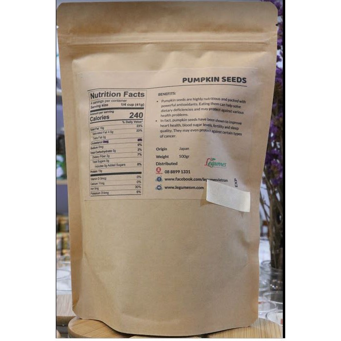 Giới thiệu Nhân Hạt Bí Nhật Hữu cơ Dinh dưỡng Túi 500g