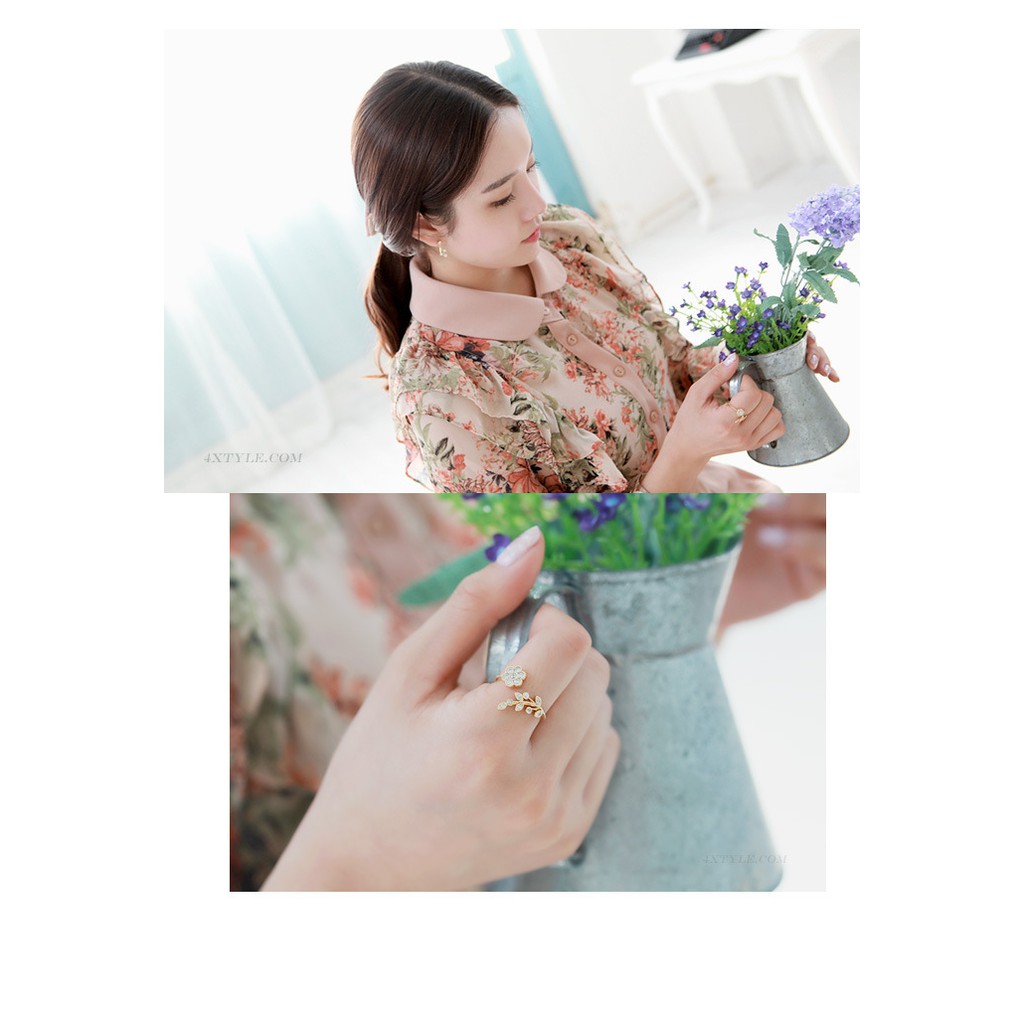 🔥 Nhẫn kim cương xoắn lá hoa dễ thương - Nhẫn đeo tay NDT01