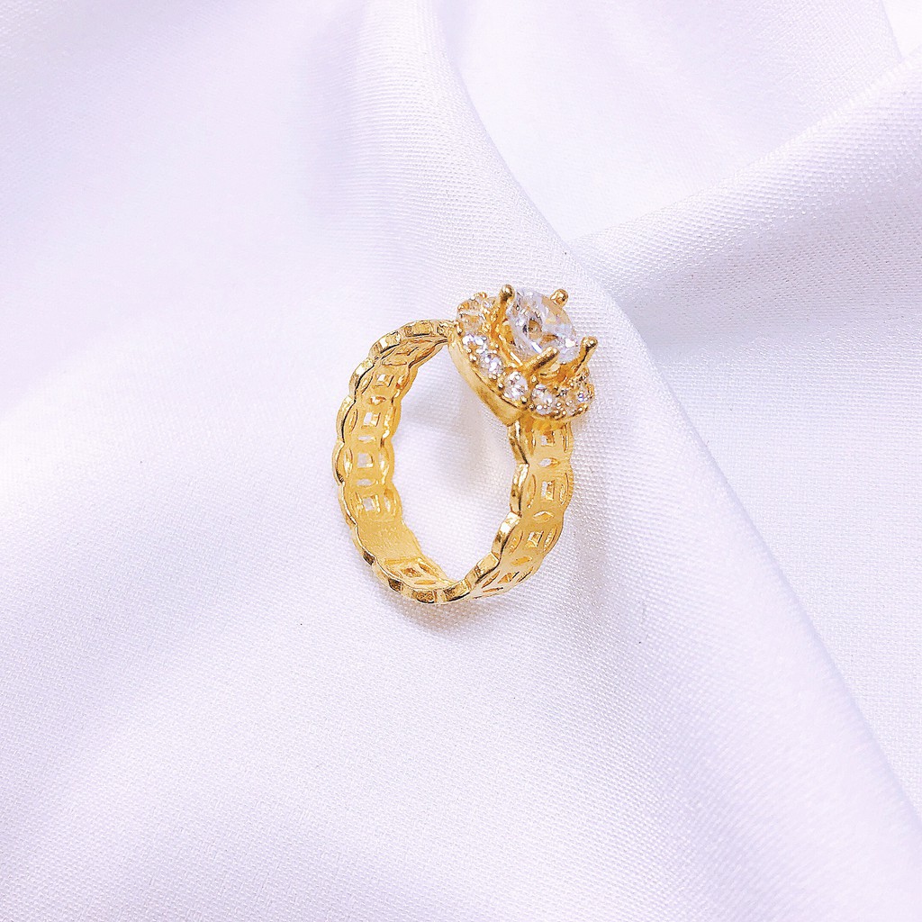 Giới thiệu Nhẫn kim tiền bạc thật hột đá tròn cực đẹp mskt1/ Nhẫn JQN