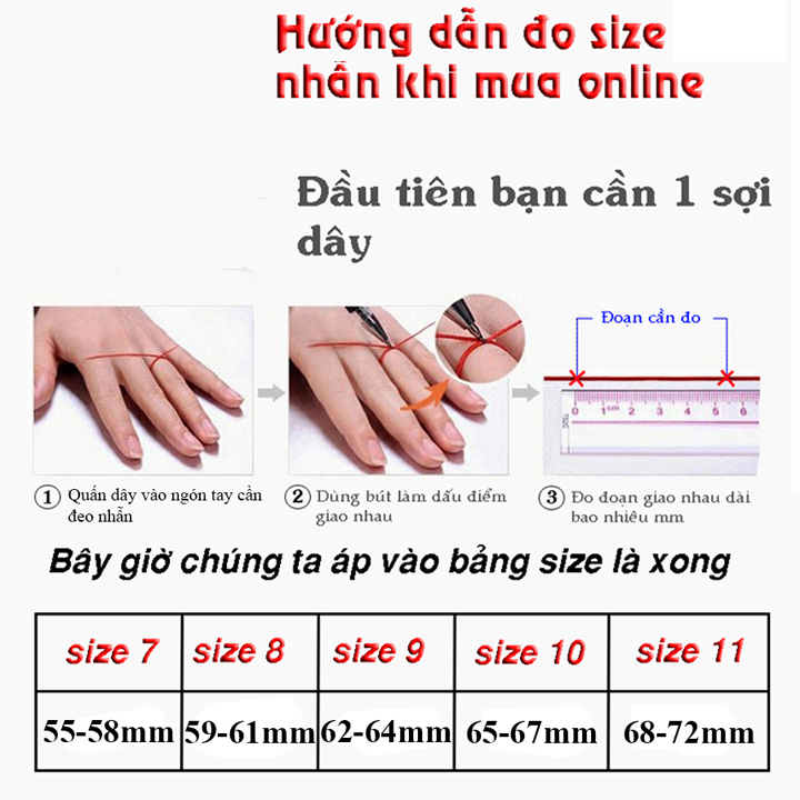Kích thước nhẫn: có các size 7, size 8, size 9, size10