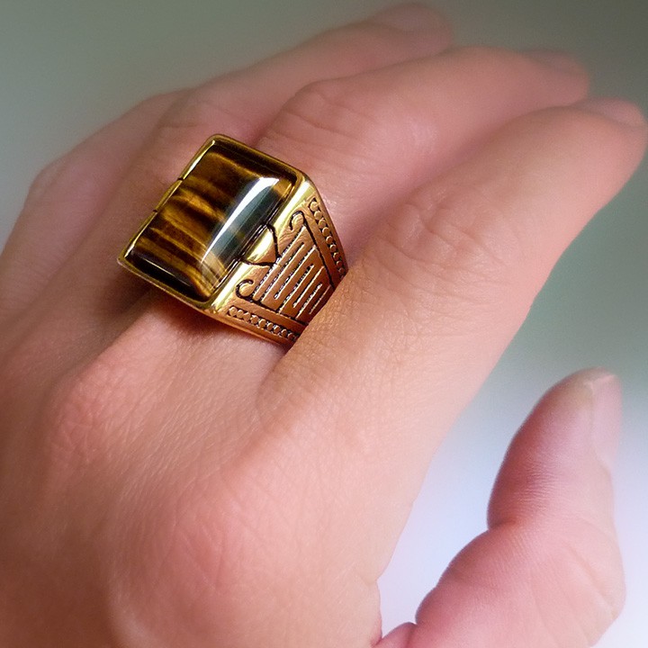 Nhẫn nam, nhẫn mặt đá, nhẫn mạ vàng.