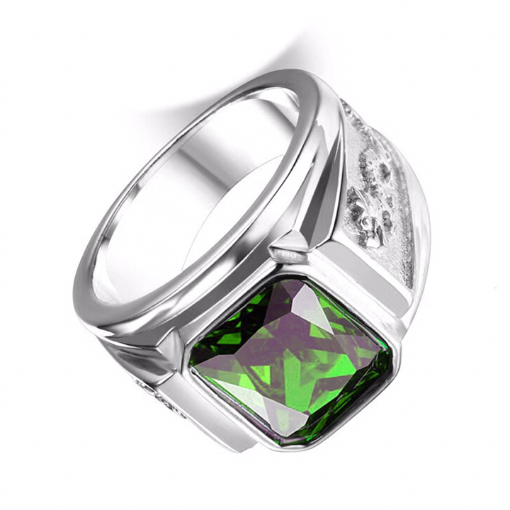 - Tên sp: Nhẫn nam màu trắng khắc rồng thiêng mặt đá xanh lá ver2