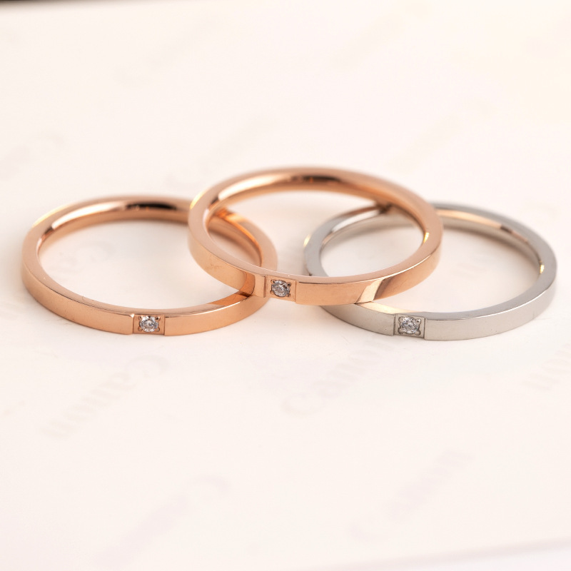 Nhẫn nam nữ titant bản nhỏ không đen 1 hạt đá đơn giản