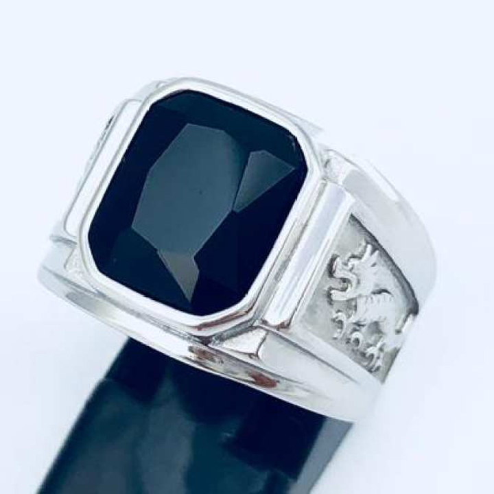 - Tên sp: Nhẫn nam trắng khắc rồng thiêng mặt đá đen ver2