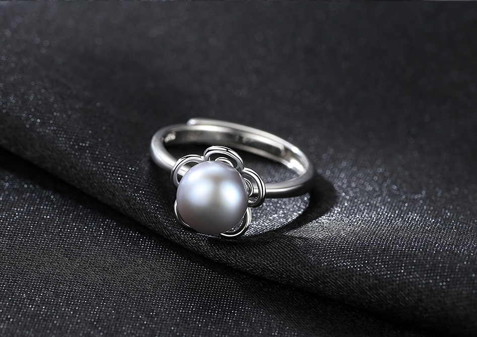 Nhẫn thiết kế kiểu free size, chất liệu ngọc trai nước ngọt và bạc 925, với hai màu đen và xám, kích thước ngọc trai khoảng 7mm