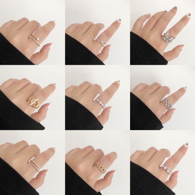 - Tên sản phẩm: Nhẫn nhiều mẫu - Chất liệu: Hợp kim cao cấp chân bạc/ hợp kim cao cấp mạ vàng - Nhà sản xuất: Nhà máy trang sức Yiwu - Yiwu City, Jinhua, Zhejiang, China - Xuất xứ: Trung Quốc