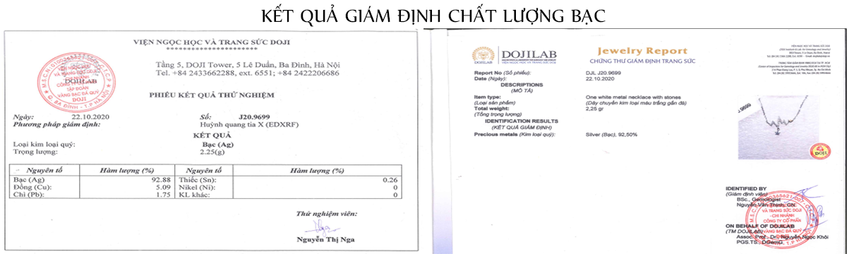 Tất cả sản phẩm tại AROCH JEWELRY đều được giám định chất lượng bạc tại viện Trang sức và Ngọc học Doji số 5 Lê Duẩn Hà Nội
