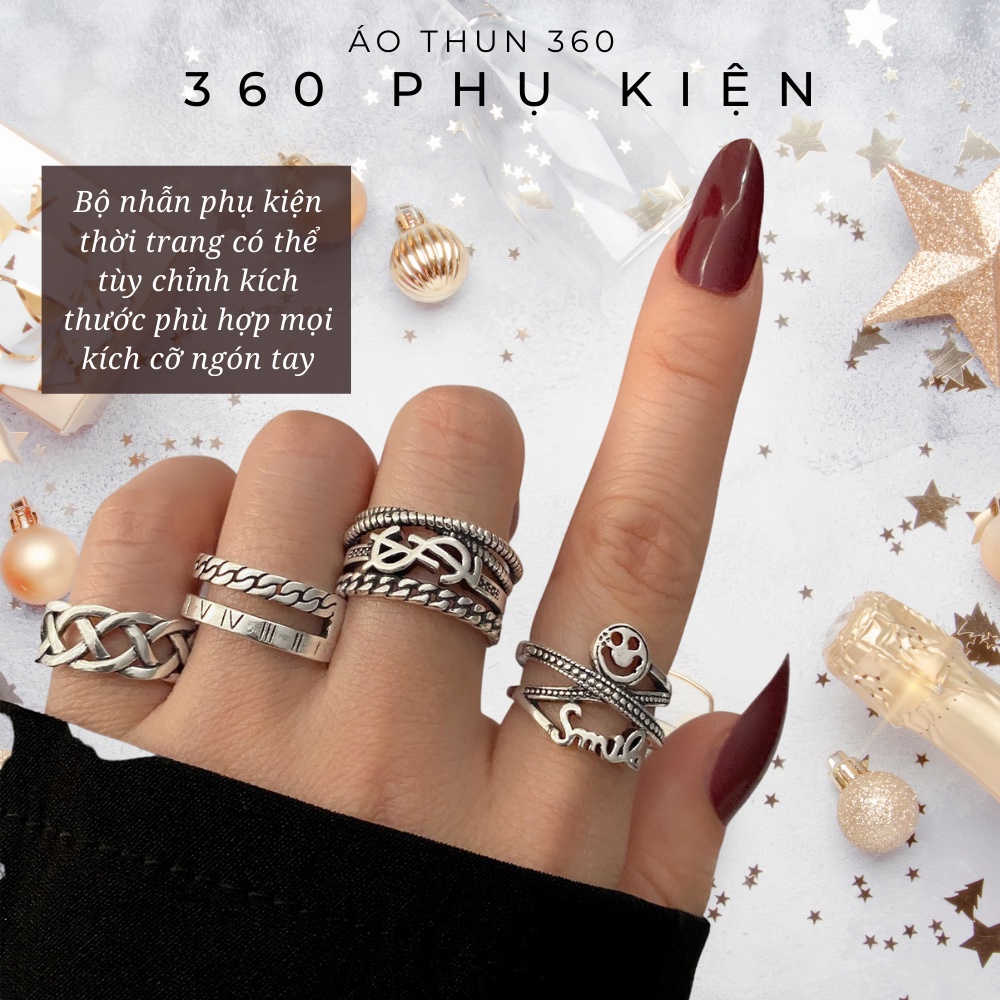 Giới thiệu Nhẫn Thời Trang Bạch Kim 360 Phụ Kiện Cá Tính Nhiều Kiểu Tùy Chọn, Nhẫn Unisex Điều Chỉnh Kích Thước Tùy Ý