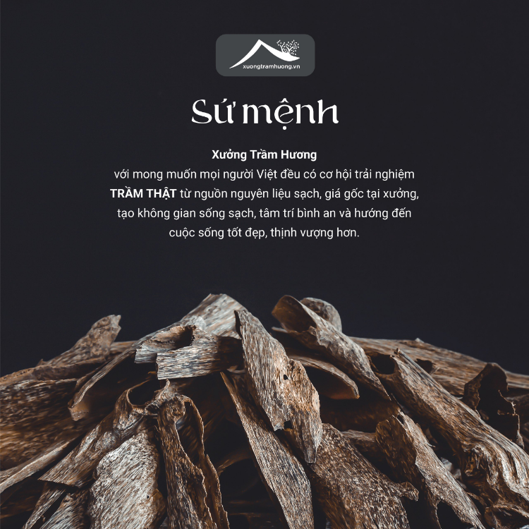 Xưởng Trầm Hương với mong muốn mọi người Việt đều có cơ hội trải nghiệm TRẦM THẬT từ nguồn nguyên liệu sạch, giá gốc tại xưởng, tạo không gian sống sạch, tâm trí bình an và hướng đến cuộc sống tốt đẹp, thịnh vượng hơn.