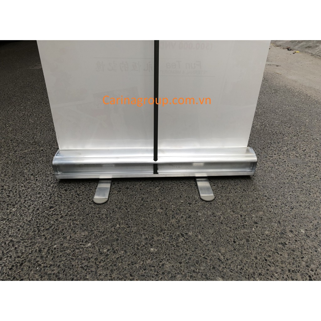 Standee cuốn nhôm thường, có thể gấp xếp được, dùng để treo poster quảng cáo tại các siêu thị, showroom, hội chợ...