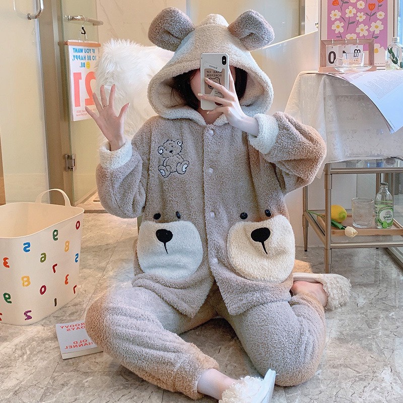 Giới thiệu [rất nhiều mẫu] Bộ ngủ lông dài tay quần dài mềm mịn cực đáng yêu họa tiết gấu, thỏ
