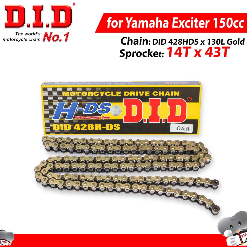 Nhông sên dĩa DID Exciter 150cc lên dĩa 43T – Sên vàng 130L 10ly DID HDS ( Thái Lan )