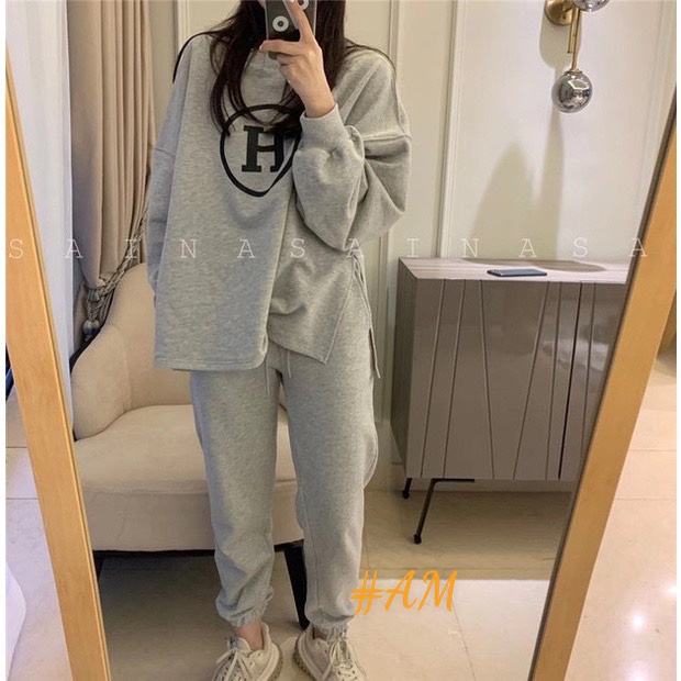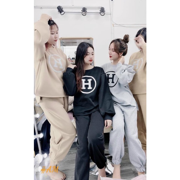 Bộ nỉ bông chữ H basic về hàng xẻ vạt cực đep