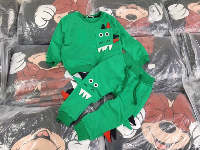 Bộ nỉ Next khủng long xanh 3D cho bé trai cực đẹp 😍 Chất nỉ da cá dày dặn, mềm mịn. Màu xanh lá cực hiếm 👍