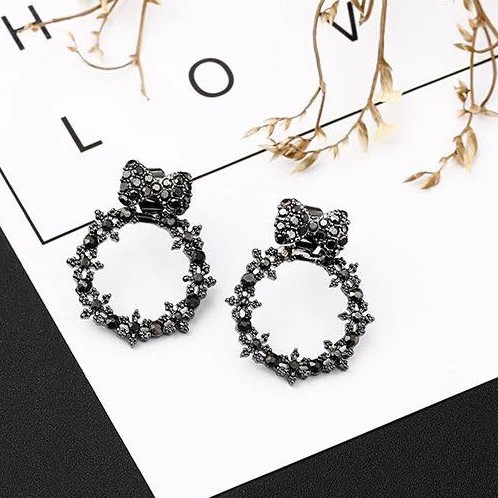 Bông tai nơ đen tròn có kiểu dáng thời trang, trẻ trung, vừa là phụ kiện đeo để đi chơi hoặc đi tiệc, phù hợp với đồ thường ngày cũng như đồ dự tiệc.