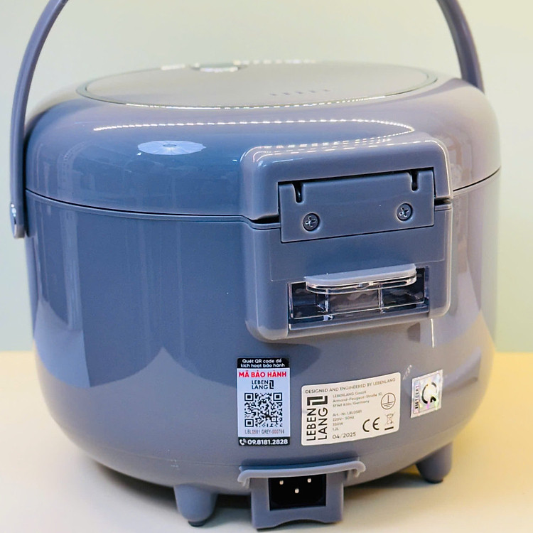 Thương hiệu: Lebenlang Model: LBL0581 Màu sắc: Ghi Công suất: 350W | Điện áp: 220V -50Hz Dung tích: 1200ml Kích thước: 20 x 24 cm Cân nặng: 2,5kg Lòng nồi inox 304 Chức năng nấu: Nấu cơm, giữ ấm Màu sắc: Grey (Xám) Sản xuất tại Trung Quốc Sản phẩm bao gồm: 01 nồi, 01 sách hướng dẫn, 01 phiếu bảo hành, 01 muôi xới cơm, 01 cốc đong và 01 xửng hấp Bảo hành chính hãng 24 tháng về lỗi kỹ thuật điện. Không bảo hành vấn đề bong tróc, trầy xước, bể vỡ, các vấn đề về lỗi ngoại quan.