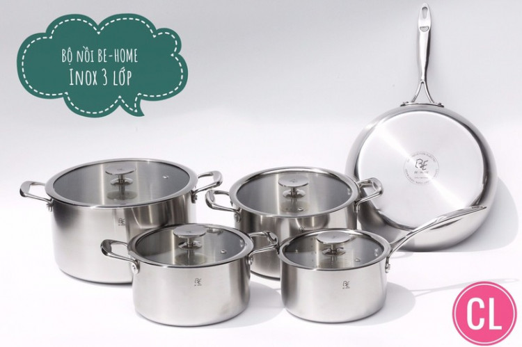 Bộ nồi inox Be-home có tay cầm cách nhiệt an toàn