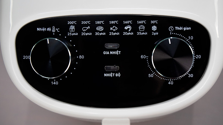 Chỉ với 2 thao tác xoay bao gồm xoay nhiệt độ và xoay thời gian, cùng với việc sử dụng 1 trong các chế độ cài đặt sẵn, bạn có thể thỏa sức sáng tạo bất cứ món ăn nào mà bạn thích, từ chiên, nướng cho đến làm trái cây sấy khô. Núm xoay của nồi chiên không dầu Hotwell AF50H1 có thể dễ dàng xoay theo cả 2 chiều: cùng chiều và ngược chiều kim đồng hồ để sử dụng. Khi điều chỉnh thời gian, đèn gia nhiệt sẽ sáng lên và tương tự đối với đèn nhiệt độ.