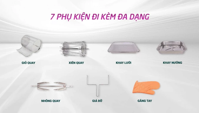 7 phụ kiện đi kèm giúp người dùng có nhiều sự lựa chọn để dễ dàng chế biến nhiều món ngon với những công thức đặc biệt.
