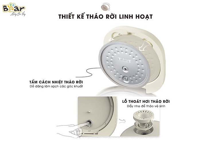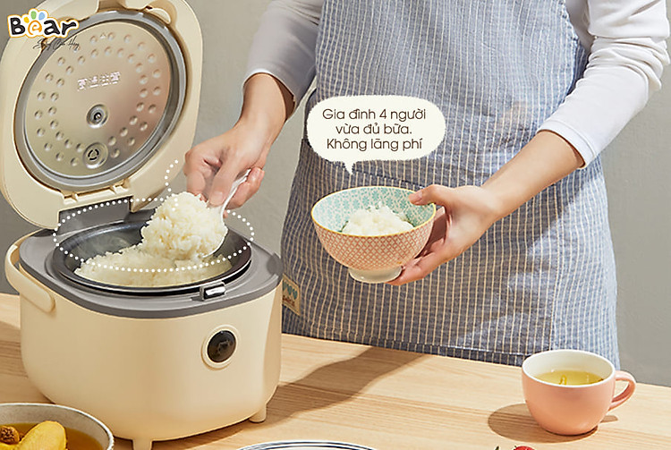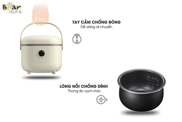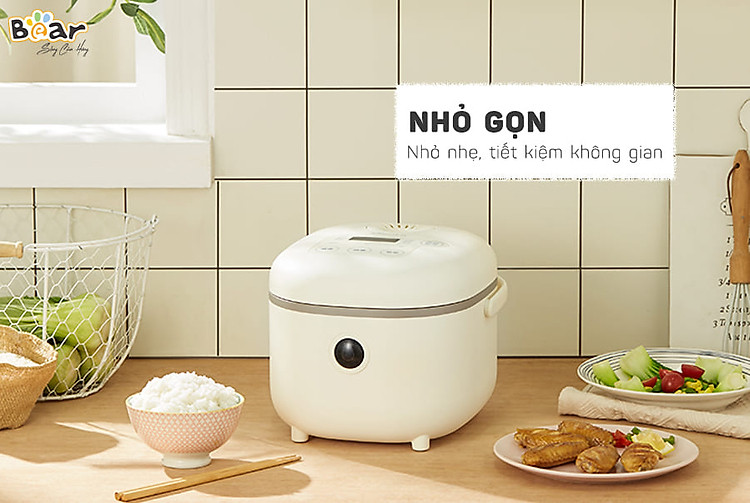 Sở hữu kích thước nhỏ gọn, quai xách tiện lợi kết hợp với tông màu be lì thanh lịch, nồi cơm điện mini Bear thích với nhiều không gian bếp, đặc biệt là những gia đình có khu vực bếp không đủ rộng. Sử dụng nồi cơm điện Bear giúp bạn tiết kiệm không gian nhà bếp và tiện lợi hơn khi nấu bữa cơm gia đình hằng ngày.