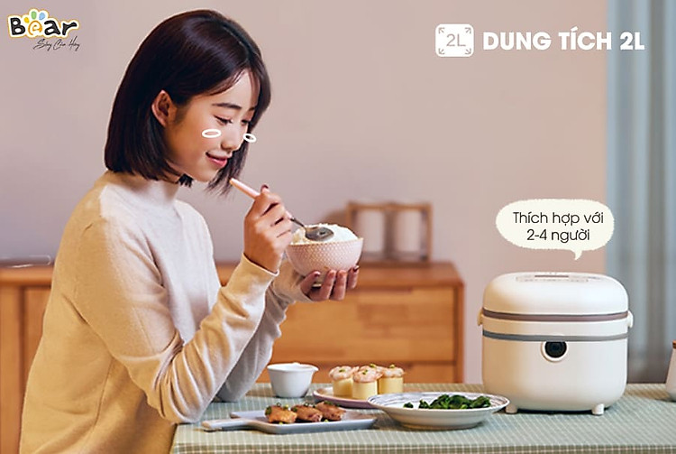 Nồi cơm điện Bear có dung tích 2000ml phù hợp nấu ăn cho gia đình nhỏ từ 2 - 4 người, nồi nhỏ xinh với công nghệ nấu hiện đại đảm bảo mang đến cho gia đình bạn những bữa cơm tơi ngon, xốp dẻo phù hợp với khẩu vị của cả người lớn và trẻ nhỏ.